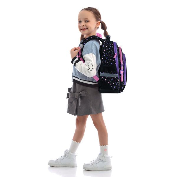 Рюкзак для початкової школи GoPack GO26-2606S-3 – стильний ортопедичний рюкзак для щасливих шкільних буднів та активного дозвілля! Він неймовірно легенький та зручний, має продуманий внутрішній простір для усіх необхідних предметів: від підручників до канцелярських дрібничок. Завдяки ортопедичній спинці Ergo Kids, він дбайливо підтримує поставу дитини, щодня даруючи відчуття комфорту. Ідеально підходить для дітей зростом 115-130 см. Рюкзак має полегшену м'яку конструкцію. Супер легенький, компактний та місткий. З ним зручно ходити до школи, на гуртки, екскурсії, прогулянки, подорожі тощо. Особливості рюкзака: Запатентована ортопедична спинка Ergo Kids з м'якими подушечками з дихаючої сіточки. Широкі та зручні S-подібні лямки, які мають анатомічну форму та дихаючу внутрішню поверхню. Нагрудний ремінь для ще кращого розподілення ваги і зручності під час носіння. Ергономічна ущільнена ручка, ручка-петля – для зручності при перенесенні та зберіганні. 2 містких відділення з внутрішніми розділювачами та органайзером, щоб усе завжди було на своєму місці. Містка фронтальна кишеня, завдяки якій всередині рюкзака буде ще більше вільного місця. 2 бічні кишені на резинці для пляшечки з водою або термоса. Посилене дно з захисним покриттям, що допомагає уникнути забруднень та пошкоджень. Світловідбивні елементи для безпеки дитини в будь-який час доби. Декор: об'ємний друк, гумовий брелок-підвіска. На що варто звернути увагу батькам: Блискавки надійно вшиті, відкриваються легко та плавно. Пулери на застібках зручно лежать у руці та не вислизають з пальців. Основний матеріал: міцний поліестер, готовий до шкільних пригод. Надійна підкладка із міцного поліестеру. Цей рюкзак — ідеальний супутник для кожного дня: стильний, продуманий до деталей і завжди готовий до нових пригод!