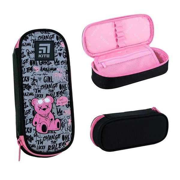 Пенал Kite на блискавці, овальний, органайзер, Lucky Girl 22х8,5х4,5см