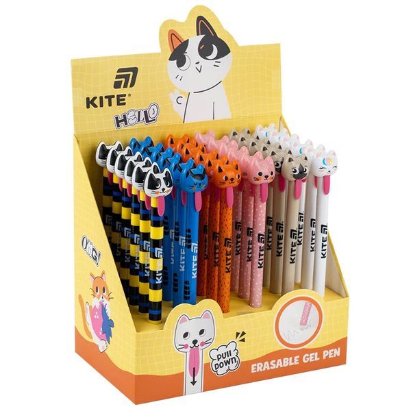 Ручка гелева Kite Cats пиши-стирай гумовий грип 0,5мм синя