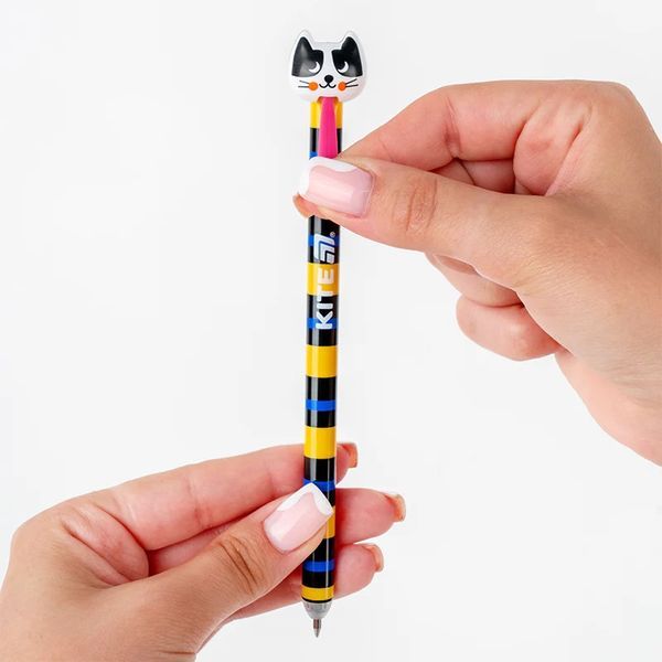 Ручка гелева автоматична пиши-стирай Kite Cats K25-027 — це не просто канцелярія, а веселий котячий настрій на кожен день! Щоб ручка почала писати, достатньо потягнути котика за язичок — і пишучий вузол весело «вискочить» назустріч творчості. Такий формат точно підкорить серце дитини й зробить будь-яке завдання трішечки веселішим. Чорнила — сині, гелеві, пишуть м’яко, плавно й чітко, залишаючи охайний, виразний слід навіть без сильного натиску. Якщо щось пішло не так — не біда! Спеціальна гумка на корпусі дозволяє стерти напис безслідно протягом 12 годин. Жодних закреслень і плям — зошити залишаться чистими. Механізм видалення чорнила заснований на терті: під час стирання напис нагрівається до 60°C і просто зникає. Магія? Майже. Корпус ручки з міцного первинного пластику — яскравий, приємний на дотик і зручний у використанні. А головна родзинка — милий котик із язичком, який перетворює щоденне письмо на гру. Особливості: гелеві сині чорнила — насичені та виразні; автоматичний механізм — потягни котика за язичок, щоб почати писати; пишучий вузол Premec — гарантує чітке, рівномірне письмо без плям; можливість стерти напис до 12 годин — більше не страшно помилитися; гумка не пошкоджує папір — зошити завжди охайні; міцний, легкий корпус із первинного пластику; оригінальний дизайн з котиком — для гарного настрою щодня.