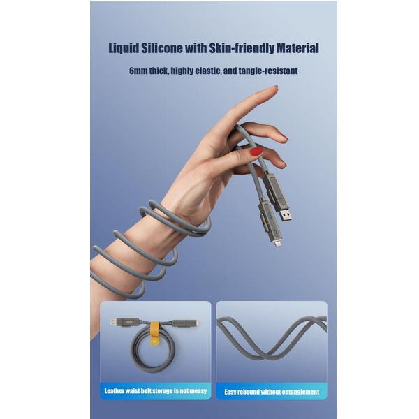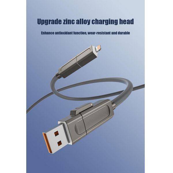 Кабель XO NB275 Zinc Alloy Silicone Type-C/USB-A to TYPE-C/Lightning - 4-in-1 - 60W - 1m Сірий