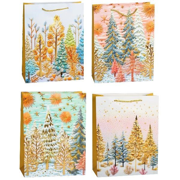 Пакет подарунковий 18х23х10см паперовий Новий Рік. Щільність 210 г/м2. Ручки - шнурок. В одній упаковці 4 дизайна.