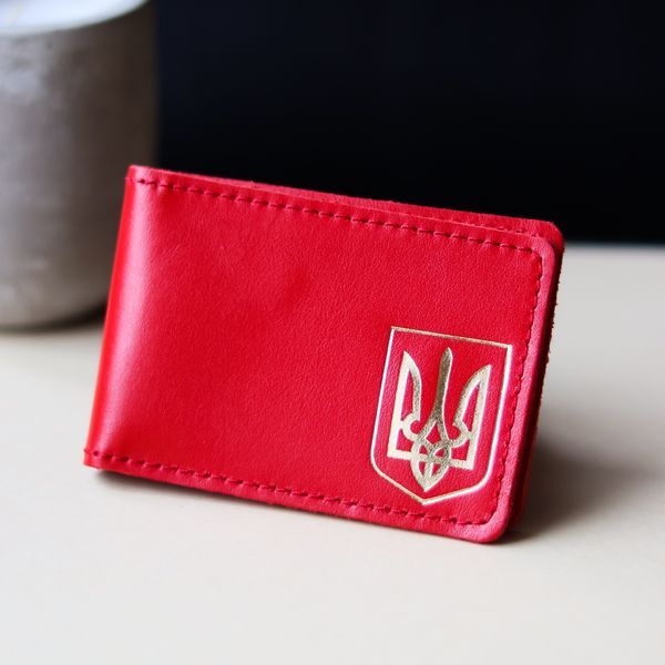 Обложка для ID паспорта изготовлена из натуральной кожи красного цвета. На обложке есть тиснение "Герб" на лицевой стороне с позолотой.