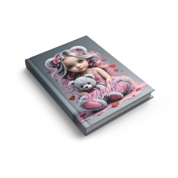 Блокнот А-7 48листов клетка, твердая обложка, Девочка с мишкой