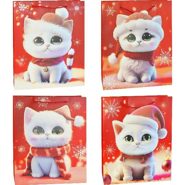 Пакет 25х32х11см бумажный Новогодние котики