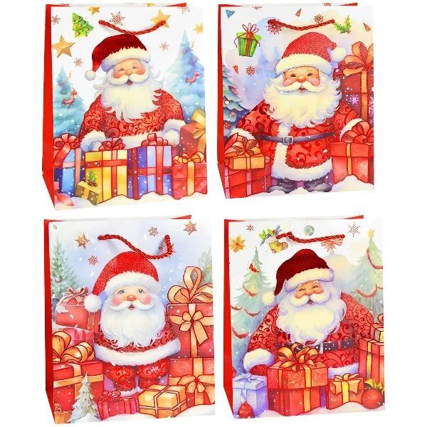 Пакет 25х32х11см бумажный Новый Год. Плотность 210 г/м2. Ручка - шнурок. В одной упаковке 4 дизайна.