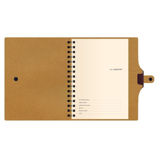 Eжедневник на кнопке А-5 160листов мягкая обложка коричневая, спираль, кремовый блок линия Полиграфист