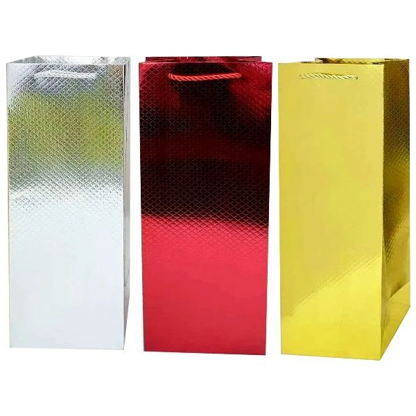Пакет подарочный бумажный под бутылку, размер 12х36х9 см. Ручки - шнурок