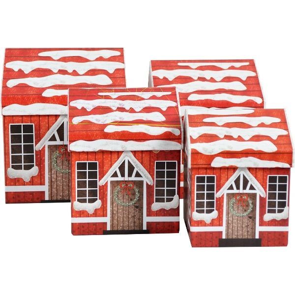 Коробка подарочная картон 10,5х10,5х13,2 см Новогодний Домик красный