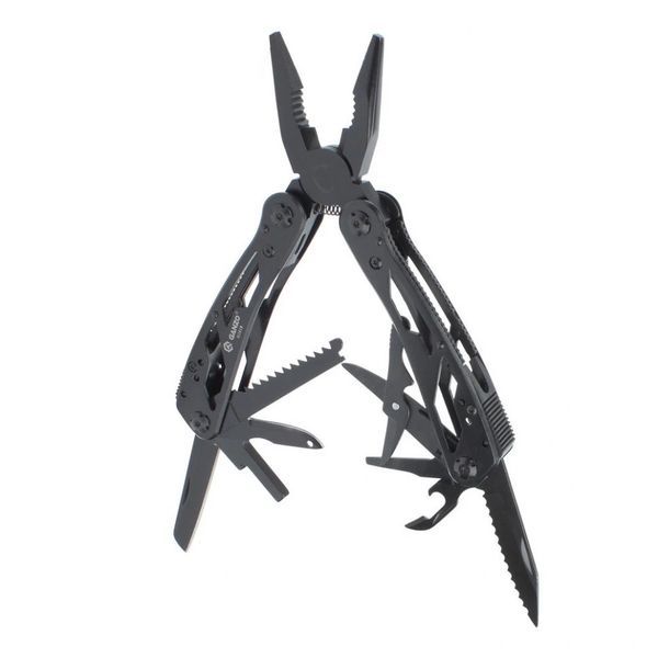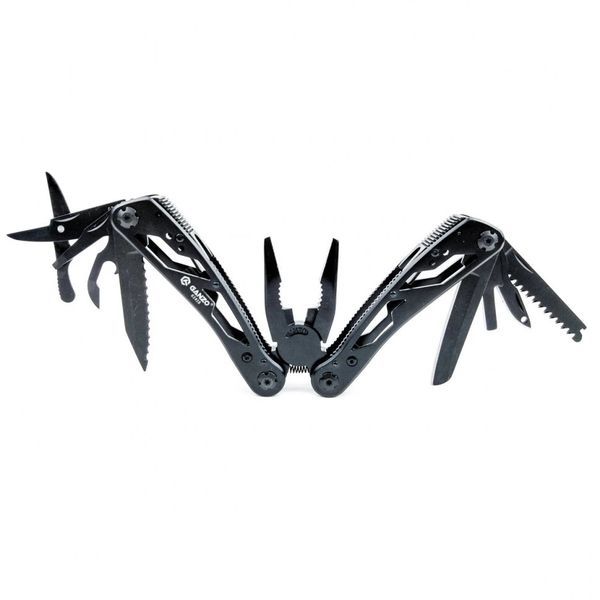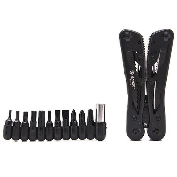 Полноразмерный мультитул Ganzo. Многофункциональный инструмент и незаменимый помощник во время похода, на прогулке или просто в домашнем использовании.. Компактный и легкий мультитул поможет вам в самой неожиданной ситуации. Ручка и все инструменты выполнены из хромированной нержавеющей стали, что обеспечивает им более высокую степень прочности и стойкости к коррозии. Поэтому отличается не только высоким качеством, но и имеет привлекательный внешний вид. в комплект этой модели входят: серрейтор (нож с особым видом заточки лезвия); открывалка для бутылок; прибор для зачистки проводов; подпружиненные пассатижи; небольшая отвертка (шлицевая); острый нож, нож для открывания консервов; ножницы, маленькая пила; приспособление для захвата гаек и цилиндров; кусачки, шило; комплект: держатель и 12 сменных бит-насадок. Хранить мультитул можно в чехле из плотного нейлона, который идет в комплекте, куда поместятся и дополнительные отверточные насадки. Вес мультитула 270г