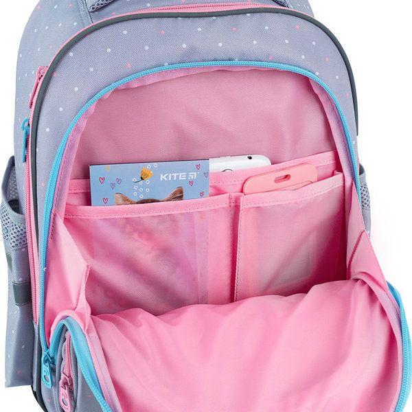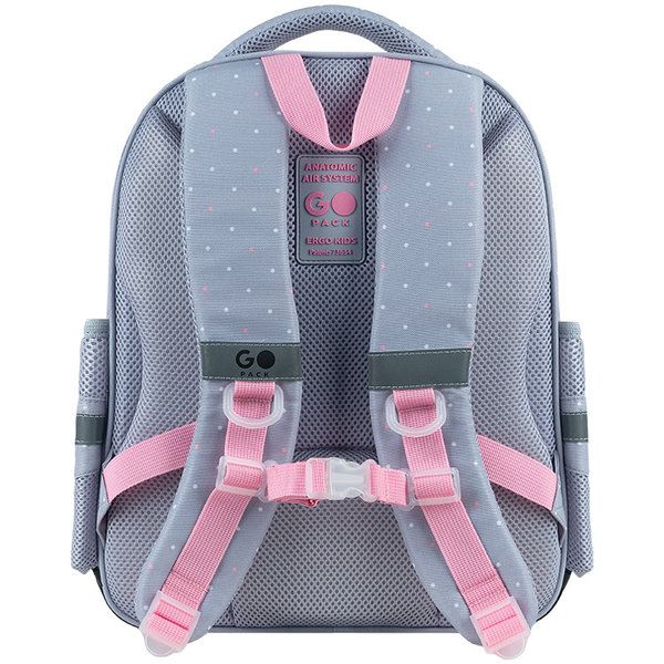 Рюкзак для начальной школы GoPack GO26-2606S-1 – стильный ортопедический рюкзак для счастливых школьных будней и активного отдыха! Он невероятно легкий и удобный, имеет продуманное внутреннее пространство для всех необходимых вещей: от учебников до канцелярских мелочей. Благодаря ортопедической спинке Ergo Kids он бережно поддерживает осанку ребенка, ежедневно даря ощущение комфорта. Идеально подходит для детей ростом 115-130 см. Рюкзак имеет облегчённую мягкую конструкцию. Супер лёгкий, компактный и вместительный. С ним удобно ходить в школу, на кружки, экскурсии, прогулки, путешествия и т.д. Особенности рюкзака: Запатентованная ортопедическая спинка Ergo Kids с мягкими подушечками из дышащей сетки. Широкие и удобные S-образные лямки, которые имеют анатомическую форму и дышащую внутреннюю поверхность. Нагрудный ремень для ещё лучшего распределения веса и удобства при ношении. Эргономичная уплотнённая ручка, ручка-петля – для удобства при переноске и хранении. 2 вместительных отделения с внутренними разделителями и органайзером, чтобы всё всегда было на своём месте. Вместительный фронтальный карман, благодаря которому внутри рюкзака будет ещё больше свободного места. 2 боковых кармана на резинке для бутылочки с водой или термоса. Усиленное дно с защитным покрытием, что помогает избежать загрязнений и повреждений. Светоотражающие элементы для безопасности ребёнка в любое время суток. Декор: аппликация из плюшевой ткани, объёмная вышивка, резиновый брелок-подвеска. На что стоит обратить внимание родителям: Молнии надёжно вшиты, открываются легко и плавно. Пуллеры на застёжках удобно лежат в руке и не выскальзывают из пальцев. Основной материал: прочный полиэстер, готовый к школьным приключениям. Надёжная подкладка из прочного полиэстера. Этот рюкзак — идеальный спутник на каждый день: стильный, продуманный до мелочей и всегда готов к новым приключениям!