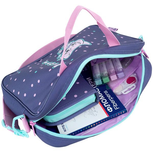 Школьная сумка-портфель Kite K26-589-1 выполнена из прочного полиэстера. Лёгкая и компактная модель, незаменимая для уроков изобразительного искусства, дизайна, а также для творческих кружков. В ней очень удобно носить альбомы и листы для рисования, цветную бумагу и другие материалы формата А4. Сумка-портфель отлично держит форму, чтобы рисунки не мялись. Ведь для каждого ребёнка важно, чтобы все его шедевры хранились бережно и аккуратно. Сумка-портфель Kite — это стильный выбор для тех, кто любит выделяться. Бренд Kite — признанный лидер в мире рюкзаков и школьных аксессуаров, ежегодно получающий самые престижные награды: Вибір року, Вибір країни, Українська народна премія. Потребители и эксперты рынка выбирают Kite за безупречное качество, стиль, инновационные решения и эргономичный дизайн. Особенности: формат А4+: универсальный, подходит для многих стандартных альбомов для рисования, воркбуков и материалов для творчества; содержит 1 объёмное отделение на молнии и 1 внутренний карман; длинный регулируемый ремень на карабинах — можно носить сумку на плече; прочные текстильные ручки; надёжные материалы и фурнитура; застёжка-молния с двумя бегунками — можно открывать и закрывать в любую сторону; эффектный дизайн будет поднимать настроение.