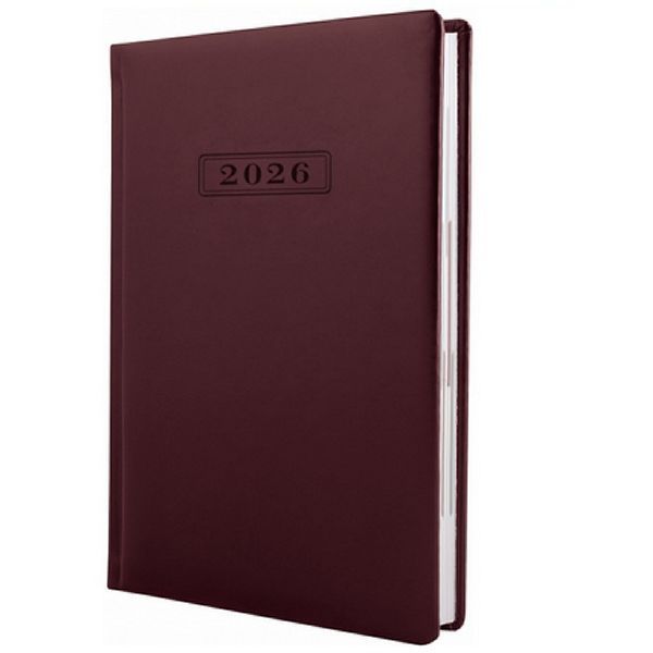 Ежедневник датированный PERFEСT на 2026 год. Внутренний блок Формат А5, количество страниц -352, цвет бумаги блока – белый, плотность – 70 г/м2. Одна страница – один рабочий день, суббота и воскресенье на одной странице, информационный блок – 4 страницы, блок для заметок в клетку – 30 страниц. Цвет печати – бордо и темно-серый, форзац – полноцветные карты Украины и Европы, отрывной уголок (перфорация по кругу), закладка – шелковая лента бордового цвета, на полях страниц – регистры с указанием текущего месяца. Язык блока – украинский, дополнительно английский. Наполнение информационных страниц: планинг на 2026-2027 гг. календари на 2026-2027 годы украинские государственные, профессиональные, религиозные праздники
